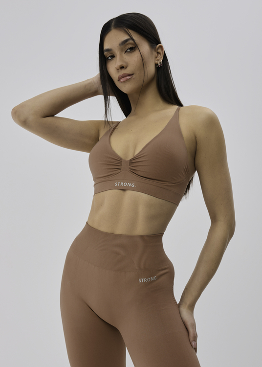 Bezszwowy Top z Miseczkami Hot Back (Deep Khaki)